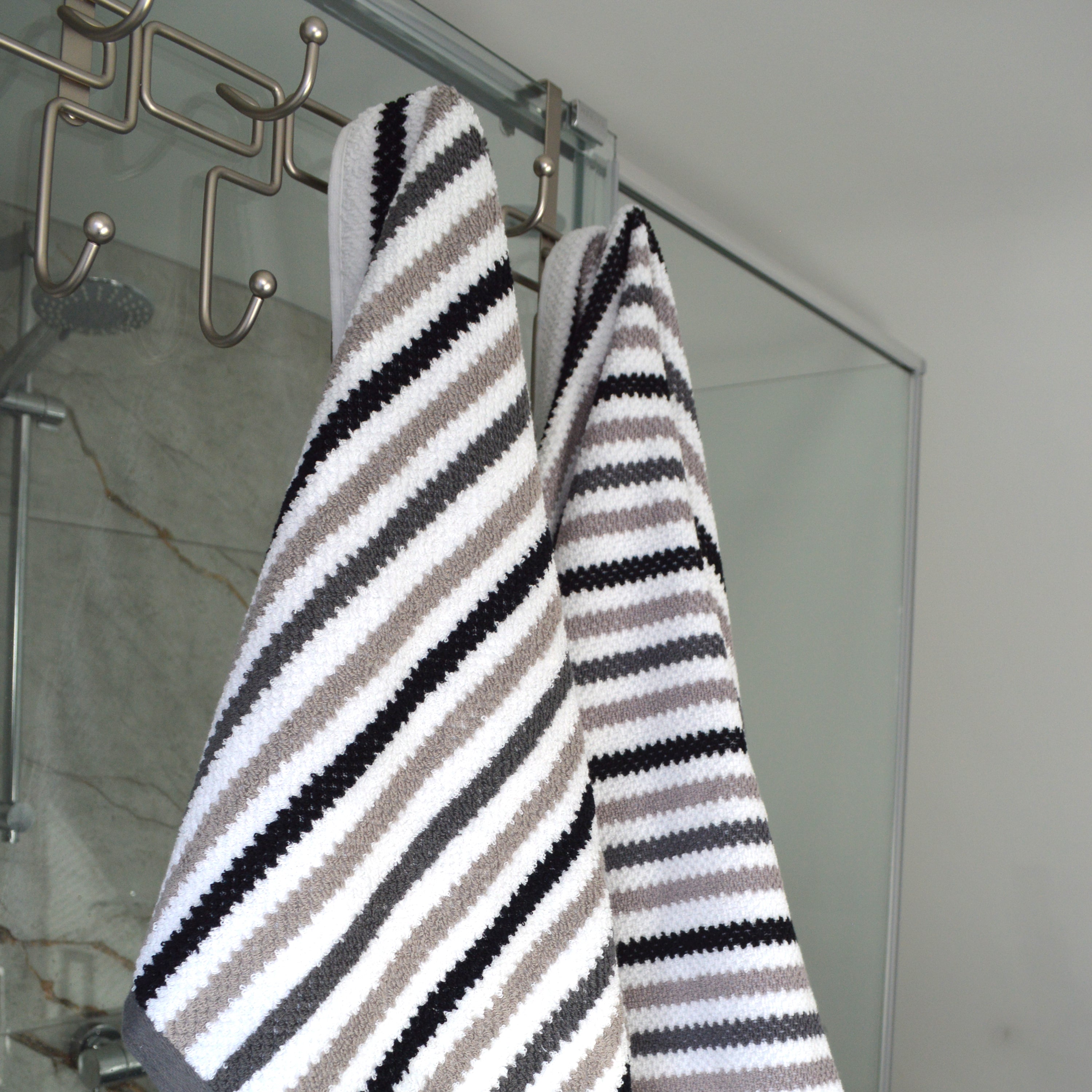 Expertly crafted from 100% cotton to provide you with a premium bathing experience. Indulge in the unmatched comfort and delicate touch of these striped towels, designed to wrap you up in super soft luxury.