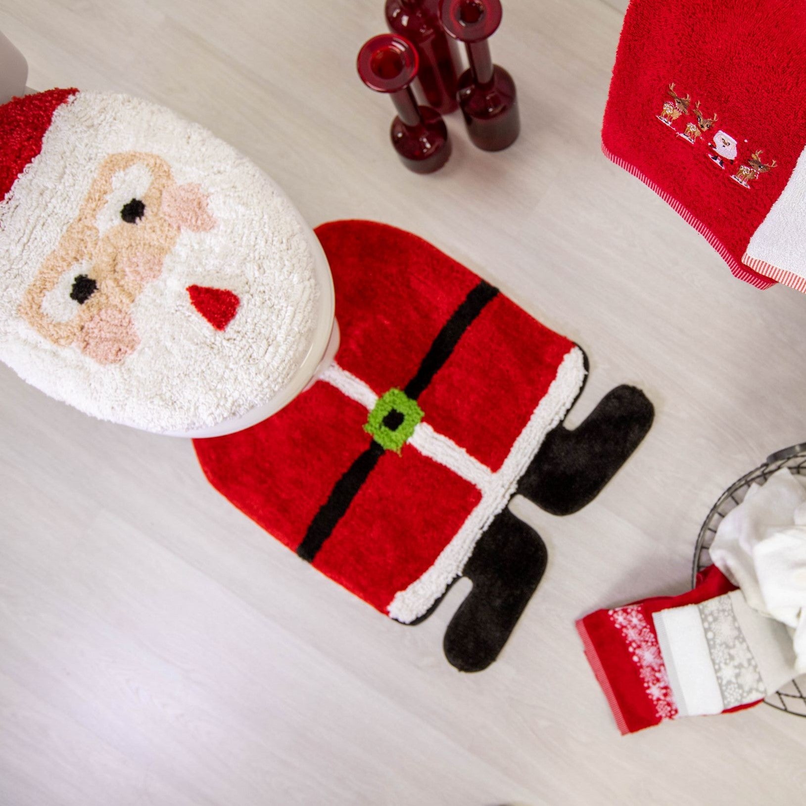 The traditional, bright red colours of Santa's iconic outfit will introduce cheer to your bathroom decor and add a simple festive touch you'll be eager to show off each year.