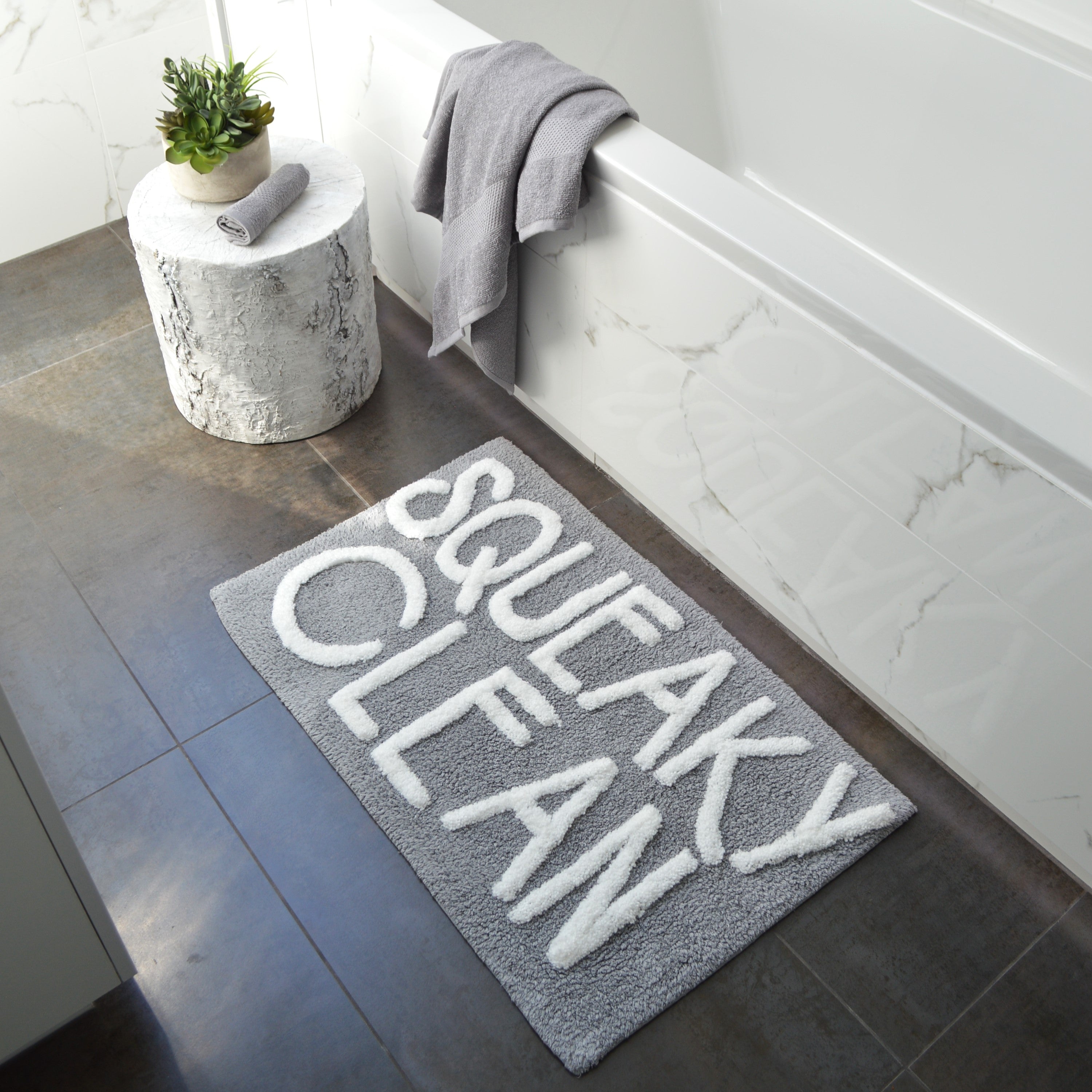 Made using a beautifully soft blend of cotton and polyester, this Squeaky Clean slogan bath mat is certain to provide long-lasting durability.