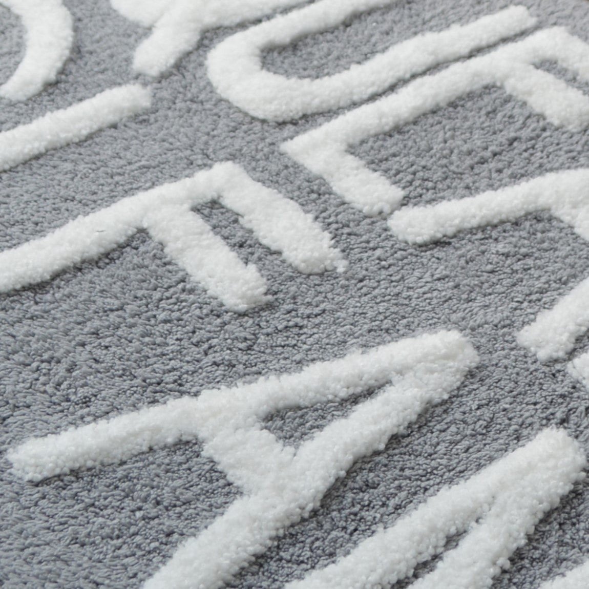 Expertly hand tufted with precision, these slogan mats won't go unnoticed. The raised pile fluffy slogans come in a trendy grey and white colour combination to complement any decor.